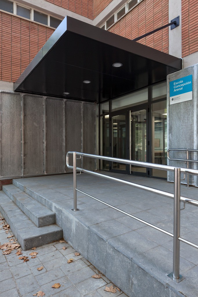 AtrásRehabilitación de la Escuela Concepción Arenal. Zonas comunes, instalaciones deportivas, aularios y fachadas.